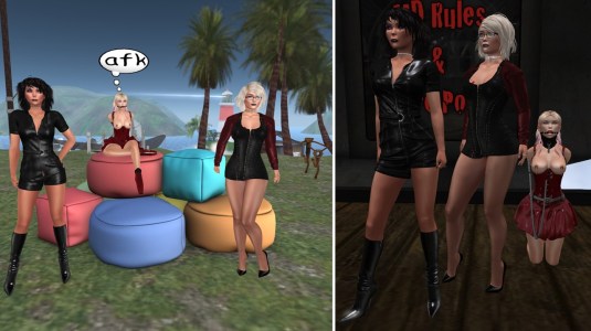 At night I took Angelique and slave Flo to “The Tavern”, where Zia was the dj for the night, stepping in for someone else. She had tested her equipment at our home the days before. Mistress Jenny and slave Gwendi joined us there and we spent the whole night there, unfortunately without Angelique who crashed and didn’t return. Zia played a nice set of music, very different to Virgo’s style and with more German Rock. We enjoyed the music and dancing and I caught up with Mistress about RL and SL.