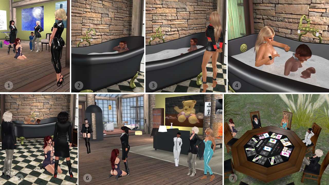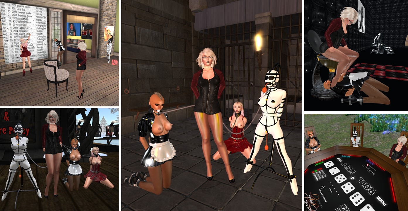 June 6th: Diomita with slave Zia at home / slave Flo and slave Zia at Mesmerize Dungeon / Diomita and Mistress Jenny at Psi’s realm / Diomita, Mistress Jenny, slave Flo and slave Zia at Mesmerize Dungeon