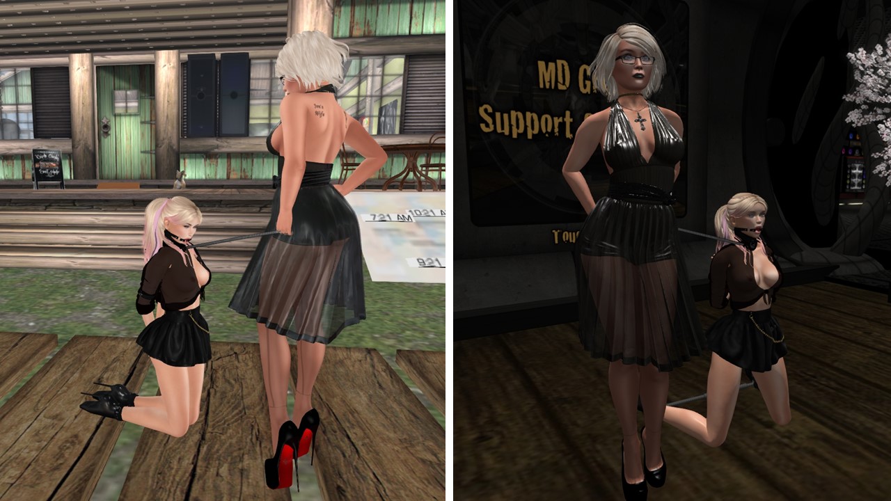 Mistress Jenny and I went to club DeLust, which was really full and laggy and hence we didn’t stay long there, just long enough to take a nic anniversary picture of us. At close to midnight we went to our loft skybox and Jenny knelt for me and I replaced her partnering collar with her slave collar. Fond memories – 12 years ago I collared Jenny, the beginning of us and also in another way the beginning of my way becoming ber Ehesklavin. Yet we both didn’t know or forsaw that.