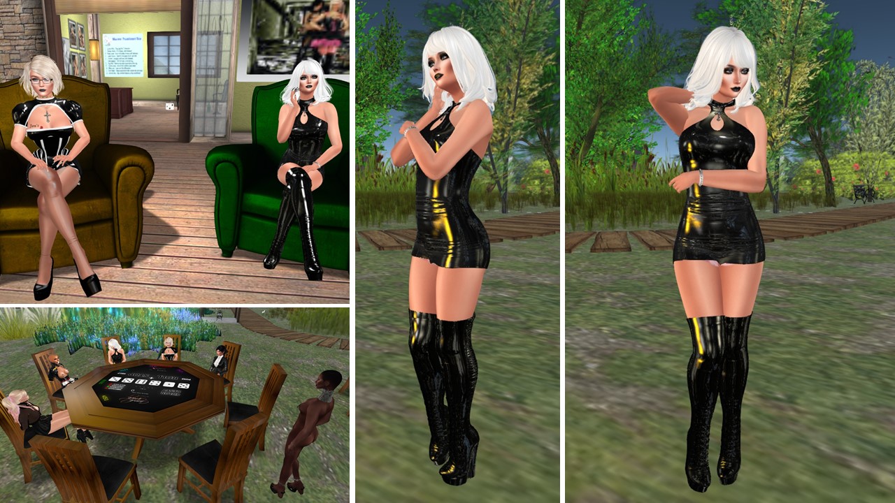 I spent a relaxed hour with Mistress in the afternoon on Friday, June 19th. We were at Heavy Bondage Club and at Puerto Esclava. But nothing was going on anywhere and hence we played a round of Yahtzee before Mistress had to leave for her RL. I stayed a bit longer, mainly at Heavy Bondage Club, where I met Ann as a living fetish art again. She draw some attention to her.